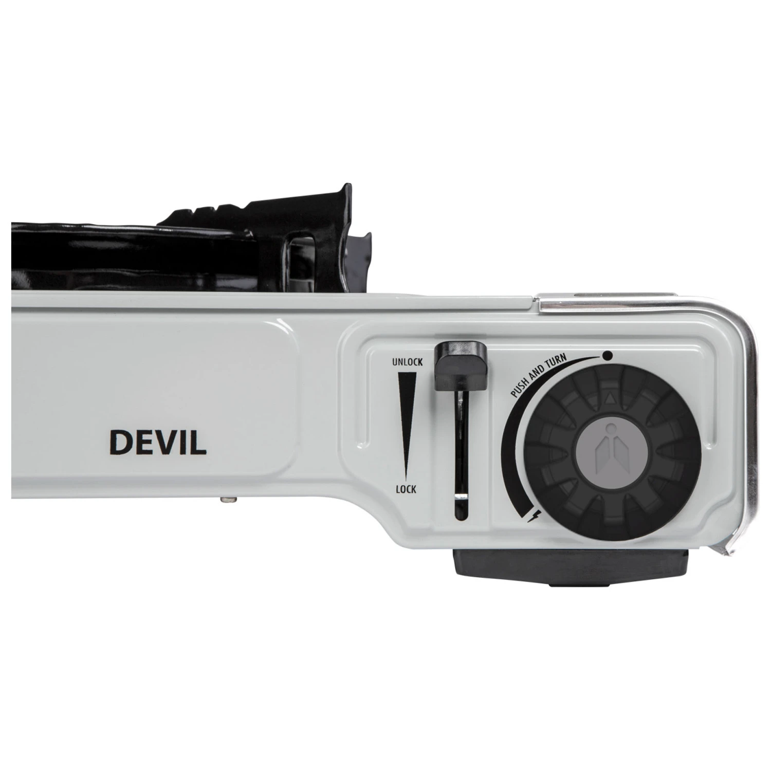 The Devil gas cooker from Brunner is operated with a gas cartridge, which is installed on the side under the protective flap. The lightweight cartridges in the shape and size of a spray can are available almost everywhere. The gas cooker has a piezo ignition, and its flame can be adjusted.