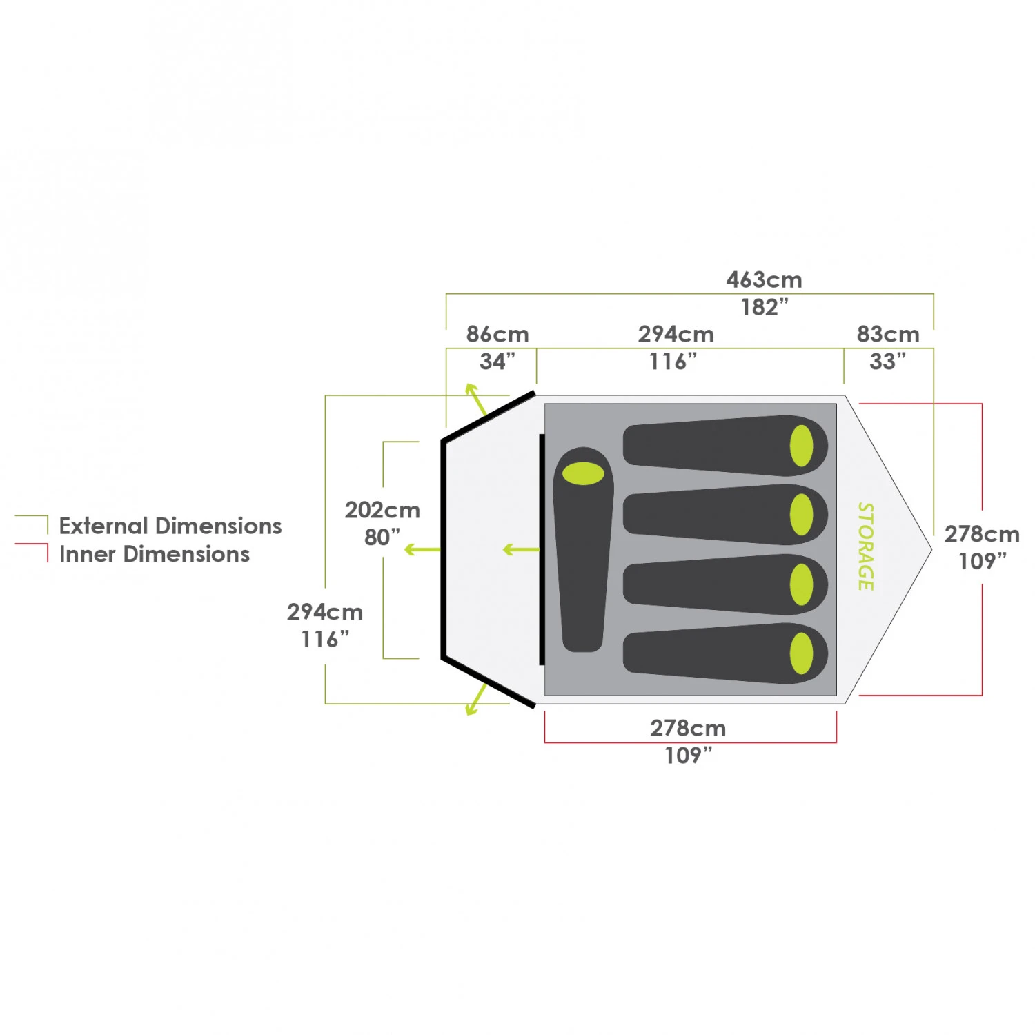 The canopy creates a shaded outdoor seating area and can be easily rolled up in bad weather conditions. Another great feature includes the large, removable entrance door that allows easy entry and exit. The living and sleeping area offers space for four people. In addition, the airy mesh roof allows the air to circulate through to minimize condensation. The spacious rear vestibule is accessible from the inside and is a protected storage space for your camping gear, keeping them away from your living space. With the Pronto 5 V2 from Zempire, you’ll be well equipped for your next camping weekend holiday!